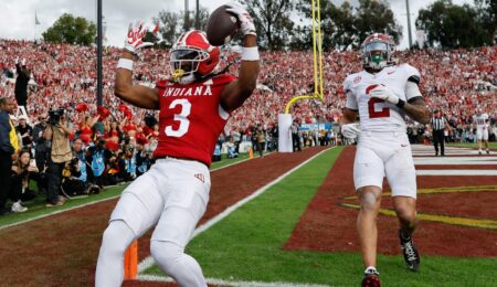 Mercedes-Benz Stadium (Atlanta) — Indiana freshman wide receiver Davion Chandler stopped just inside the tunnel to sign autographs for a…