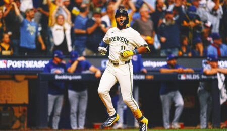 Andrew Vaughn and Jackson Chourio each hit a three-run homer, William Contreras added a solo shot and the Milwaukee Brewers…