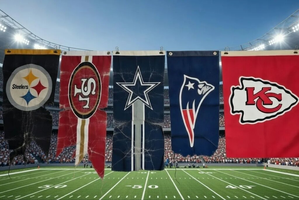 The “Steel Curtain” Steelers won four Super Bowls in six years (1974-1979), dominating with Chuck Noll, Terry Bradshaw, Franco Harris, and legends like Mean Joe Greene, Jack Lambert, and Mel Blount. The end came gradually after Super Bowl XIV (1980 win): 9-7 in 1980, missing playoffs. No dramatic collapse – just erosion.