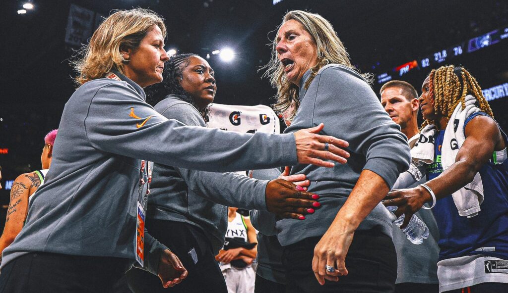 The controversial sequence began when Reeve was ejected after walking onto the court to confront the officials. Her objection was a response to Suns star Alyssa Thomas scoring a layup after inadvertently running into Lynx star Napheesa Collier’s knee while stealing the ball. The score was 82-76 at the time.