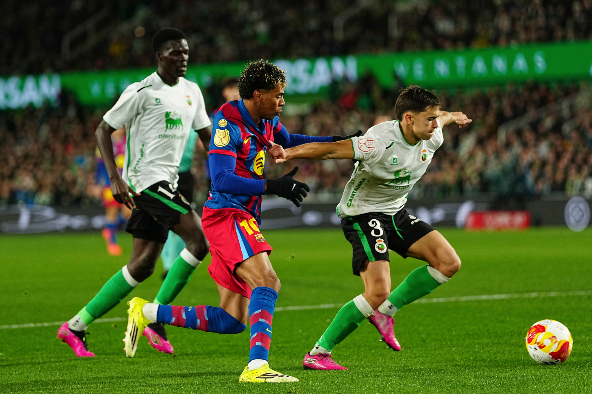 Goal! Racing de Santander 0, Barcelona 2. Lamine Yamal (Barcelona) left footed shot from very close range.