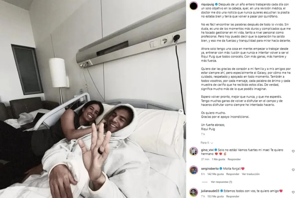 After a whole year working every day with only one goal in mind, yesterday, in a medical check-up, the doctor gave me news that you never want to hear: the plastic surgery was not right and I had to go back to the operating room.It is not easy to find the words after all that I have experienced. Without a doubt, it is one of the hardest and most difficult moments that I have had to manage in my life, both personally and professionally. But today I can say that the operation went well, and that gives me strength and peace of mind to look ahead.Now I only have one thing in mind: to start working now, to train with more enthusiasm than ever and to try to be the Riqui Puig that you all know. With more desire, more hunger and more strength.I want to thank my family and friends from the bottom of my heart for always being there, but especially the Galaxy, for how they have cared for me, respected me and supported me at all times. Also to all of you, for every message, every word of encouragement and every show of affection I have received these days. It really means so much more than you can imagine.I hope to return soon, better than ever, and that you will wait for me. I am looking forward to enjoying myself on the pitch again and to making you enjoy yourself as I have always tried to do.I love you very much.