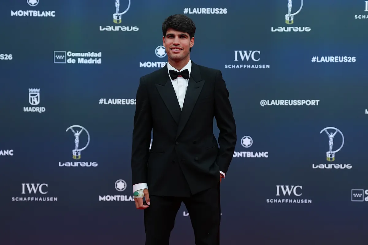 Carlos Alcaraz is still in cotton wool because of the injury to his right wrist that forced him to withdraw last week from the Barcelona Open Banc Sabadell and to withdraw from the Mutua Madrid Open. The tennis player was seen on Monday in Madrid, on the occasion of the Laureus Awards, with a large splint on his right hand.