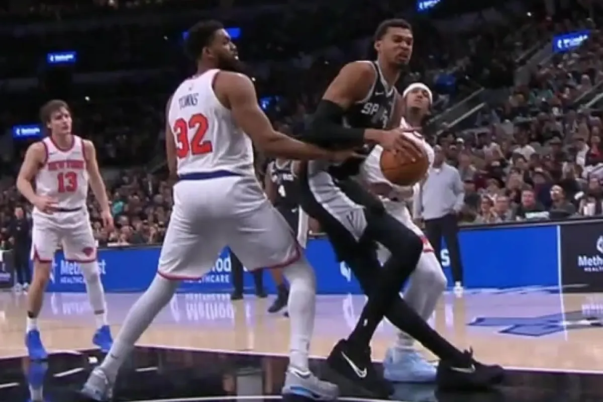 Victor Wembanyama starred in the scare of the night on the last day of the year in the NBA after injuring his left knee when he tried to grab a rebound under the hoop and his leg bent unnaturally, forcing him to leave the court limping towards the locker room with 10:32 remaining in the San Antonio Spurs’ win over the New York Knicks (134-132)